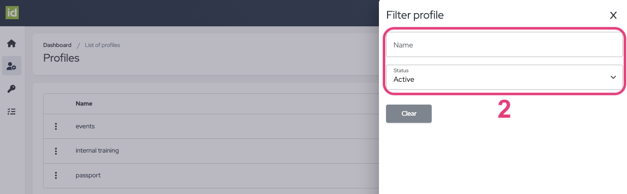 - Then on the “Clear” button to clear your filters and to display the complete list of Profiles.