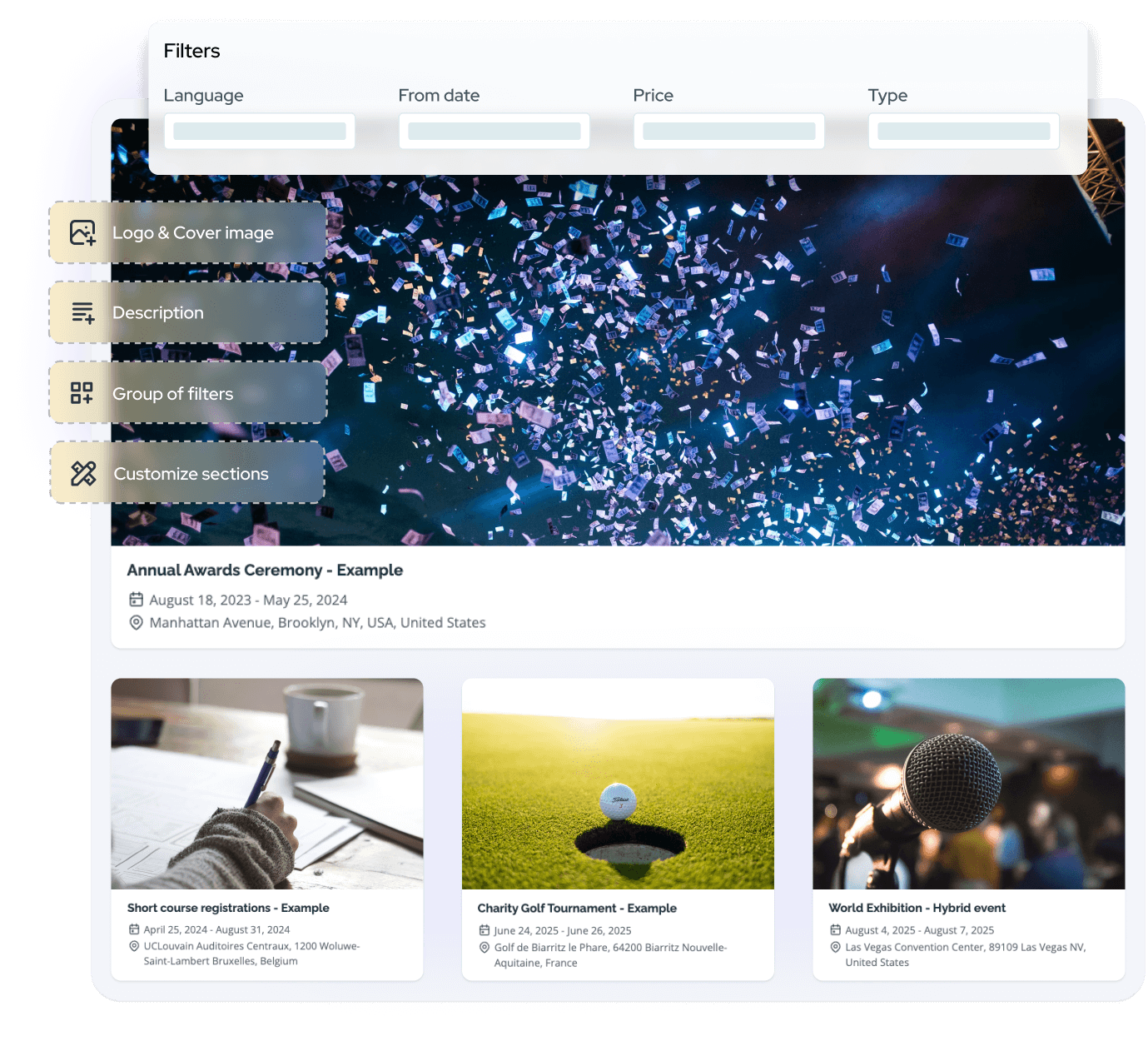 Discover our Catalog: an all-in-one promotion feature to display all your events in one place. Keep full control over your display with unlimited customization options.